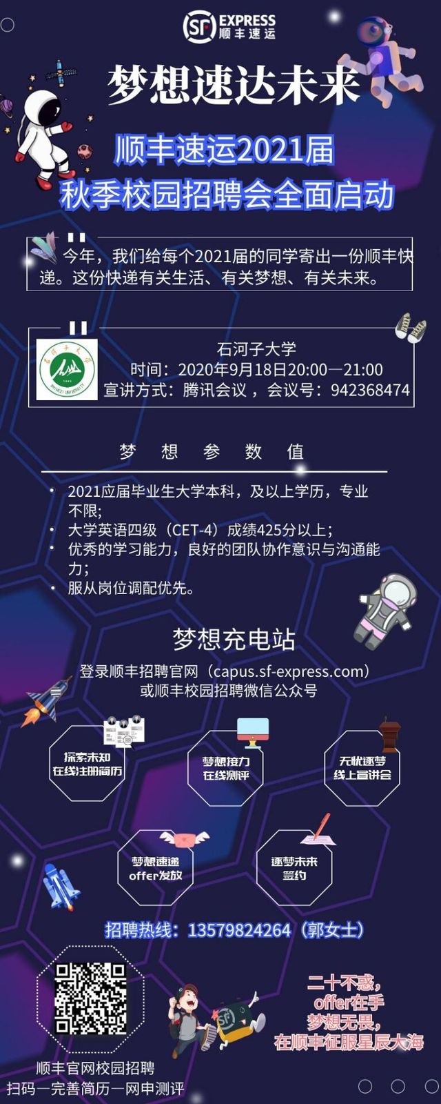 【校招速递】企业:新疆顺丰速运有限公司时间:9月18日(今天)下午20:00宣讲方式:腾讯会议,会议号:942368474