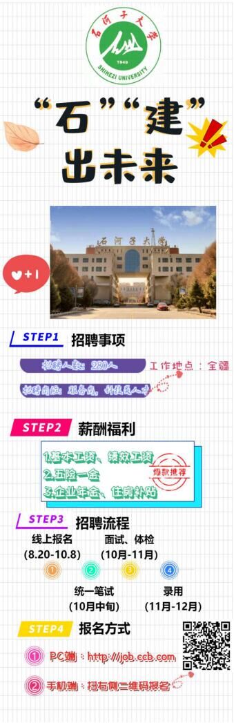 【空中宣讲】中国建设银行石河子大学专场宣讲时间: