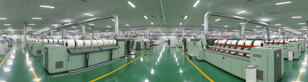 100万锭全部采用“国内一流、世界先进”生产设备:德国特吕茨施勒清梳联(配置瑞士乌斯特异纤机+魔眼)、瑞士立达精梳机、瑞士立达并条机、德国特吕茨施勒并条机、德国青泽粗纱机、德国青泽71型细纱机(采用集体自动落纱、自动换管)、瑞士立达最新型产品卡摩纺纱机K42(采用集体自动落纱、自动换管)、络筒选用德国赐来福全自动智能化托盘式络筒机、意大利萨维奥全自动托盘式络筒机、日本村田全自动托盘式络筒机,所有络筒设备电清均配置拣异纤及PP功能;转杯纺选用德国赐来福最新型产品A8型设备(配置全自动落纱、接头、上管机器人系统)、日本村田涡流纺机;辅机设备采用瑞士洛瓦全自动智能化空调系统、瑞士立达包磨刺辊盖板机、德国贝克全自动套磨皮辊机、瑞士乌斯特试验仪器(全自动大容量棉花检测仪、单纤维测试仪、全自动纱线条干测试仪、全自动强力测试仪、十万米纱疵分析仪),整个纺纱过程采用世界一流的粗细络联运输系统。
