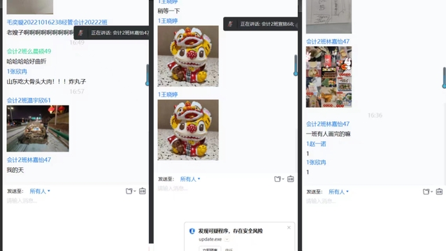 张欣冉同学说:“同学们分享着自己身边的趣事,积极地展示自我,同时又带着对未来大学生活的憧憬,不仅丰富了大家的假期生活,也增加了两个班级的感情。”