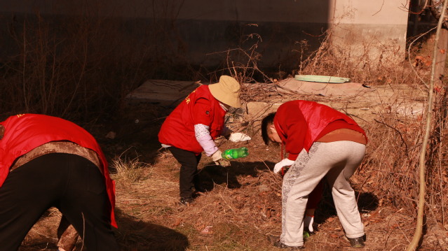 活动中,志愿者们主动拾捡白色垃圾、清理堆积的枯草、擦洗社区小路旁的广告牌。他们分工明确,清除工作开展井然有序,将社区内的绿化带打扫得干干净净。