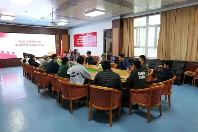 在退役学生座谈会上,退伍学生们依次进行自我介绍,并结合自身在部队的成长经历踊跃发言,分享了服役时的经历以及复学后的感受。