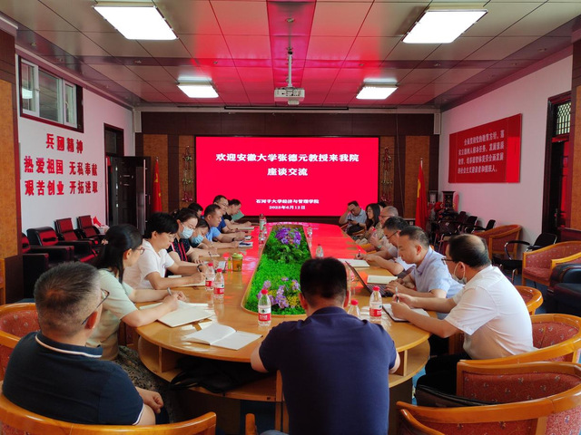 王磊教授首先对张德元教授表示了热烈欢迎,并简要介绍了英国正版365官方网站发展概况。张德元教授向参加座谈会的英国上市公司官网365老师介绍了安徽大学农经科研平台和学术团队的发展历程,并结合安徽大学农经学科团队建设指出:一要重视队伍建设。团队建设要从实际出发,要符合国家需要,加强与相关兄弟单位的交流合作,建立全方位、多层次、协同创新发展的学术共享平台和机制;二要凝聚研究方向。打开“三农”问题研究视野,凝炼研究方向,提高研究的针对性和专业性;三要聚力发展。加强人文社科的人文底蕴和科技赋农之间的联系,建议积极发挥兵团特色和比较优势,依托校院特色,开展以“兵团”“屯垦”为主题的研究,助推研究平台健康发展,为兵团高质量发展提质增速;四要注意处理好团队与学科的关系。团队建设要彰显学科特色,依托学科建设促进学生的培养质量提升,发挥出“学科-平台-团队”协同育人机制的优势。