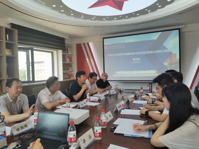 此次调研旨在高标准高质量推动习近平新时代中国特色社会主义思想主题教育落地落实,扎实推进对口支援政策,助力学院学科发展的一项工作。调研中,王力院长一行分别到访对外经济贸易大学国际商学院、国际经济贸易学院、金融学院、政府管理学院、统计学院,就学科建设、科研研究、师资队伍、留学生人才培养等议题进行了充分的交流。通过此次调研,为进一步深化学院与对外经济贸易大学相关学院合作提供契机,特别是双方就教学课堂共享、研究生联合培养、科研平台共建、教材联合编写、7月份在霍尔果斯举办“一带一路”高质量建设与边境贸易发展研讨会等方面达成合作意向。