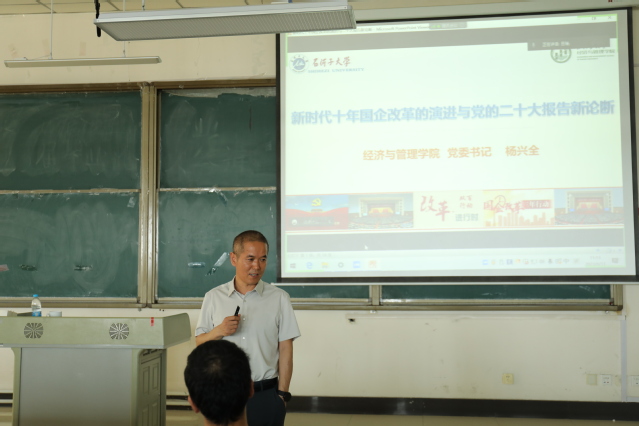 学院党委书记杨兴全讲授的《新时代十年国企改革的演进与党的二十大报告新论断》课程中,对国有经济改革的重大任务和《意见》主要亮点进行深入讲解,并结合自身专业知识,让同学们更加了解党的二十大报告对国资国企改革的新论断。