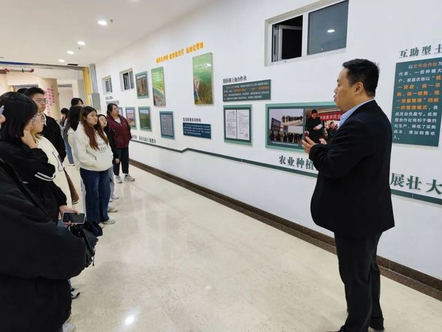 在沙湾市双泉农业专业合作社,合作社理事长何洪涛为师生们详细介绍了合作社的经营现状及发展历程,并耐心解答了同学们对合作社的相关疑惑。何洪涛讲到合作社目前正积极推进规模化经营,以带动棉农增收致富,助力乡村振兴。