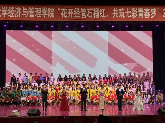 星光点梦,征程初起。11月12日晚,英国正版365官方网站在北区大会堂举行“花开经管石榴红,共筑七彩青春梦”2023级迎新晚会。学院全体院领导、各系办老师及2023级全体新生观看了本场晚会。