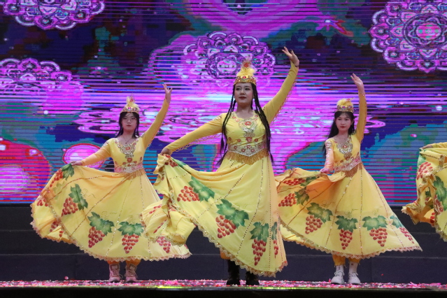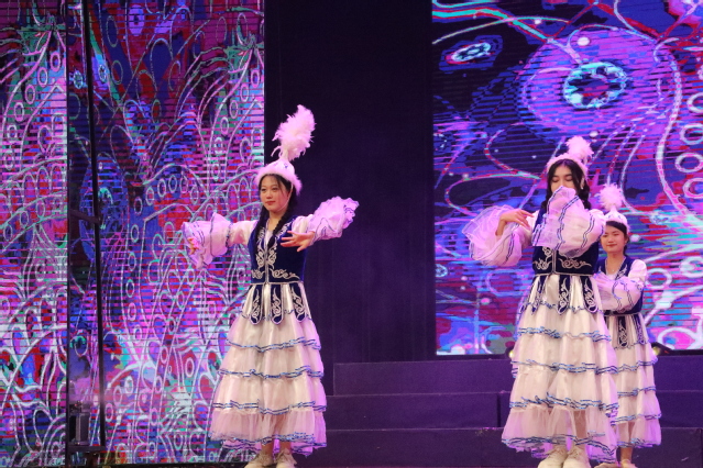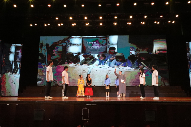 晚会13个节目精彩纷呈、特色鲜明,舞蹈、走秀类节目总是能快速吸引观众目光、带动现场氛围、收获观众如浪潮般的掌声和欢呼声。其中,民族舞《民族一家亲》展示了少数民族文化独特的韵律与魅力,辅导员老师们带来的串烧歌舞《new boy》则将全场气氛推向了又一个高潮。而舞台剧《我来过这片土地》则以另一种更为深沉热烈的情感演绎了老一辈兵团人“生在井冈山,长在南泥湾,转战数万里,屯垦在天山”的精神,激励着新一代青年传承弘扬兵团精神,争做先锋扛重担,不断书写中华民族伟大复兴新篇章。